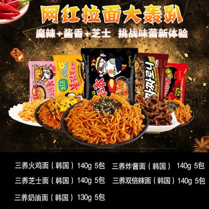 韩国进口方便面 三养火鸡面5袋装超辣网红方便面泡面干拌面