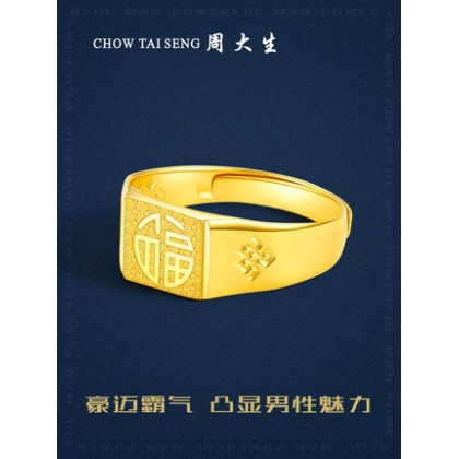 周大生黄金戒指男足金5G极光金工艺福字男戒指环送爸爸父亲礼物